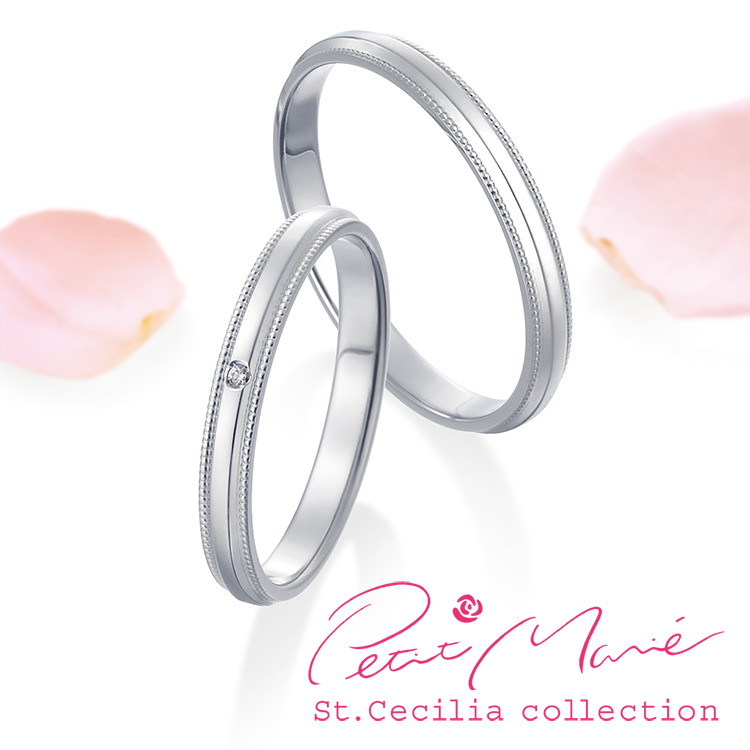 クラシカルなミル打ちが特徴的な結婚指輪です。